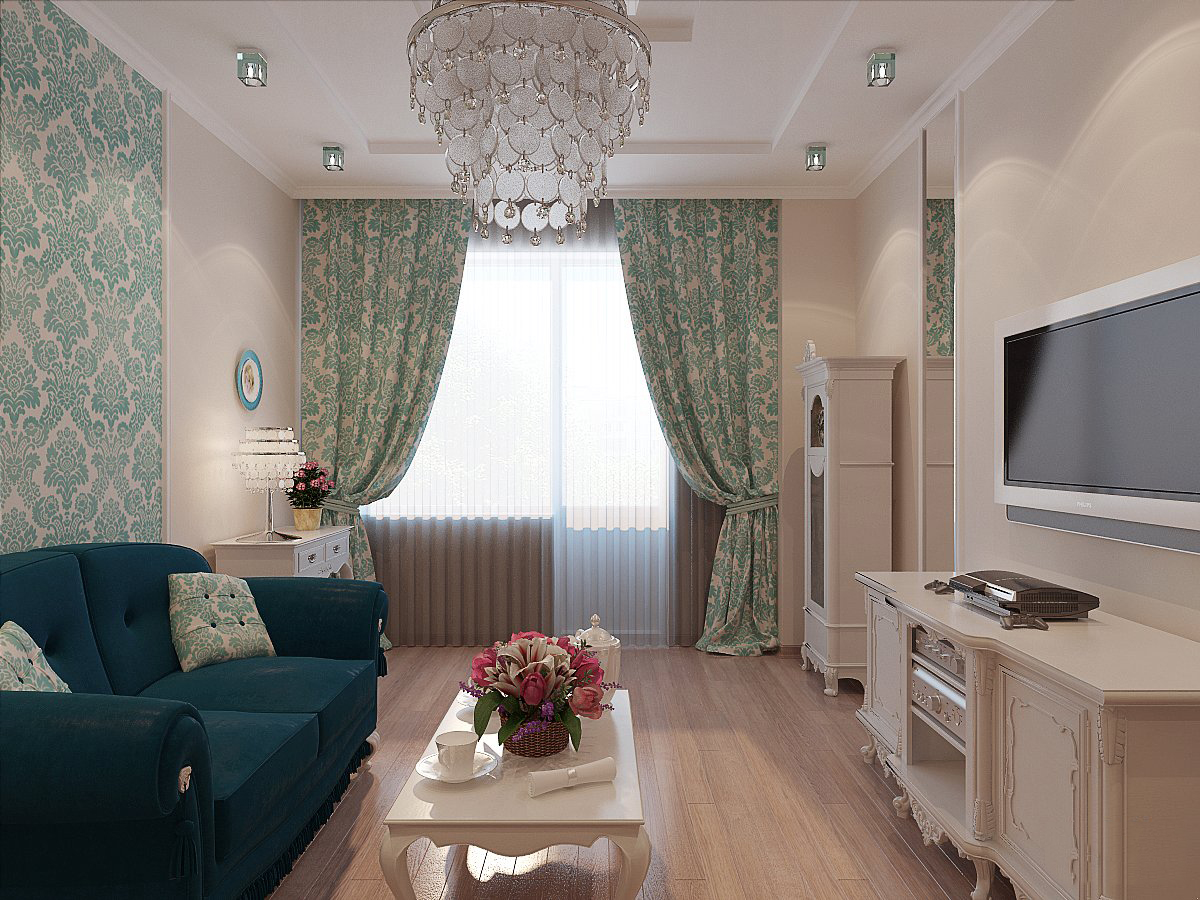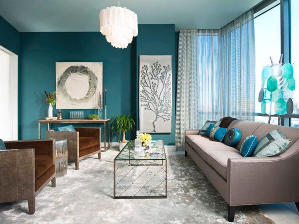The turquoise color in the interior of the living room should look regal and noble. An aristocratic bluish-blue or dark turquoise hue will perfectly fit into the central room of the house, however, there are several recommendations here.