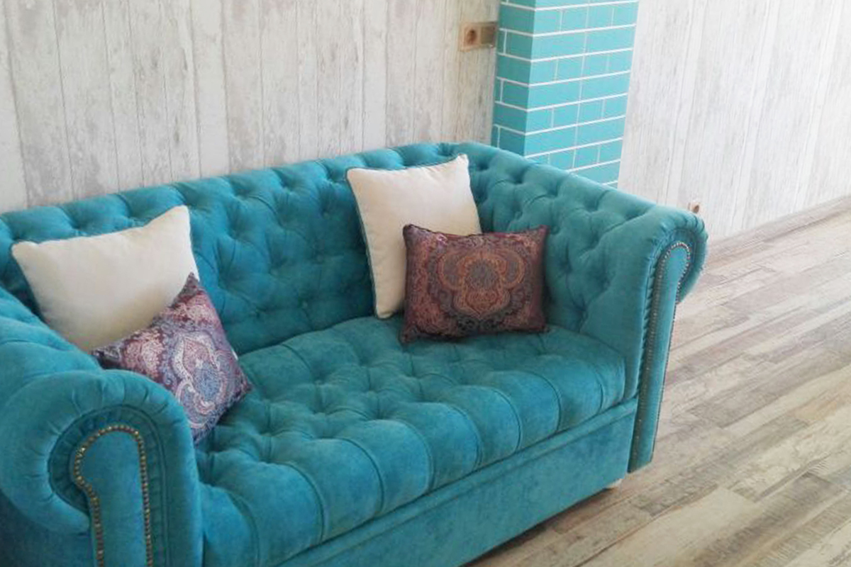 Furniture of original turquoise colors will be the perfect solution for poorly lit rooms. The living room, in which there are sofas and armchairs with such cheerful upholstery, will look bright and elegant. Turquoise color can be diluted with boring monochrome walls. The central element of the living room can be turquoise modular furniture, which can be made to order.
