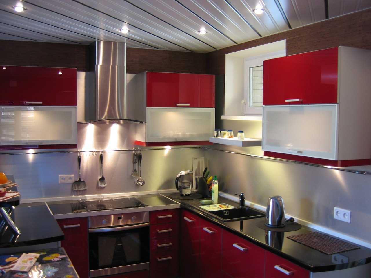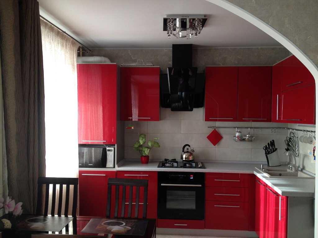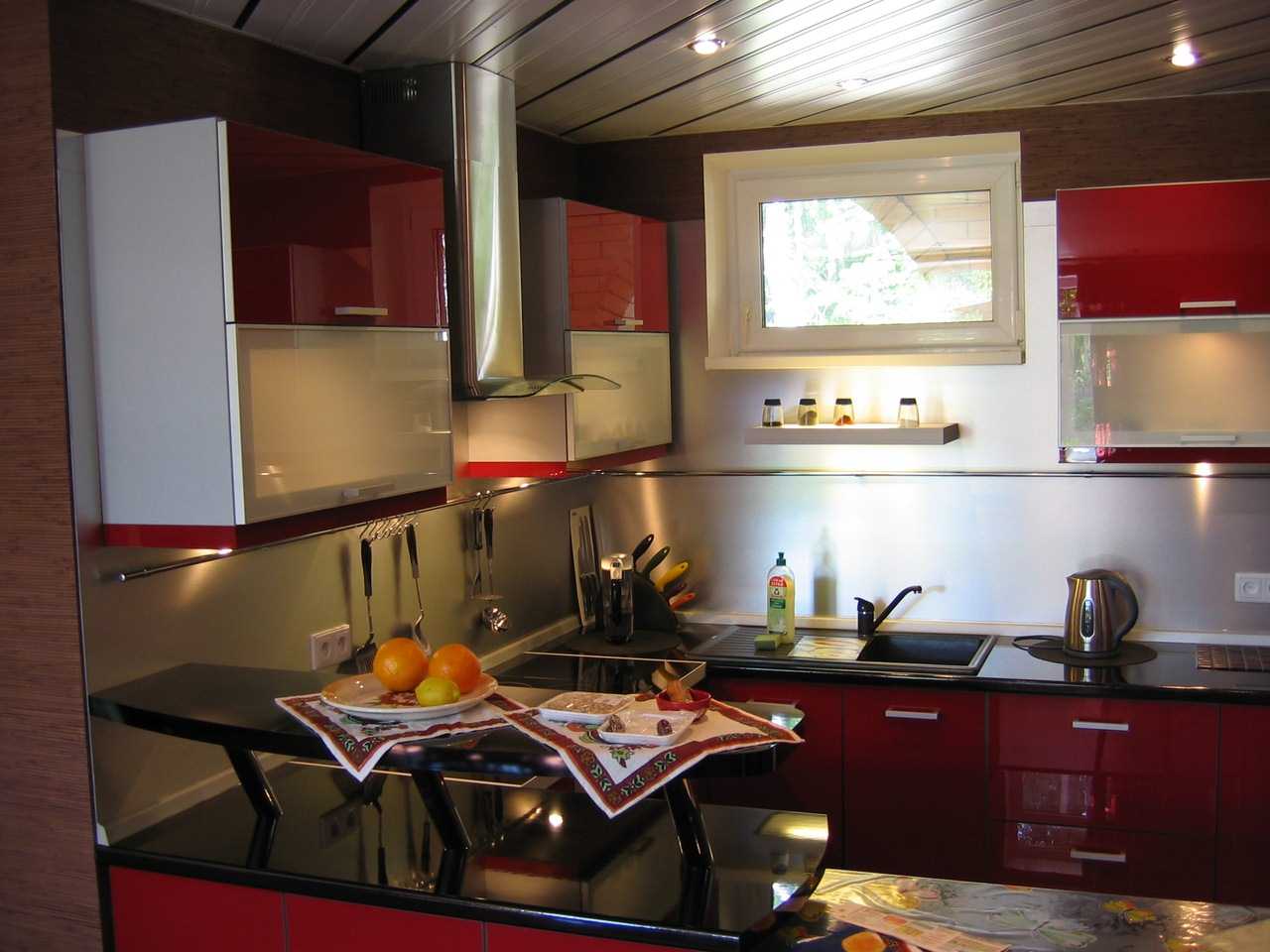 Bright kitchen design in burgundy color