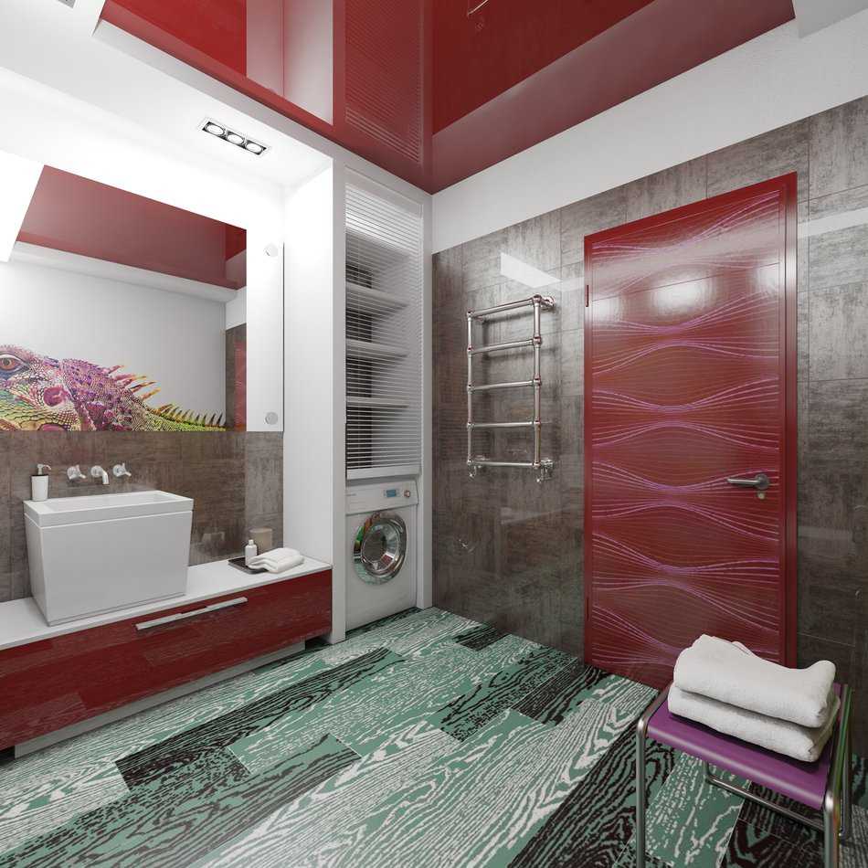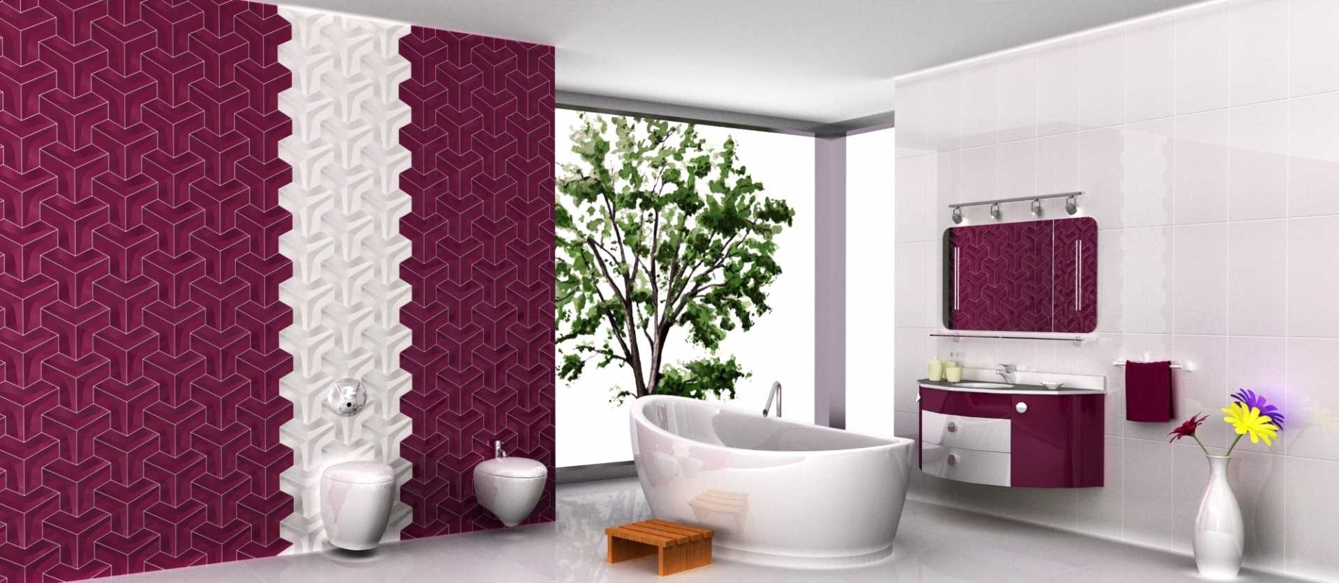 Burgundy tiles in the bathroom look quite cocky. At the same time, such an interior will help you to cheer up faster in the morning, tune in to the working mood.