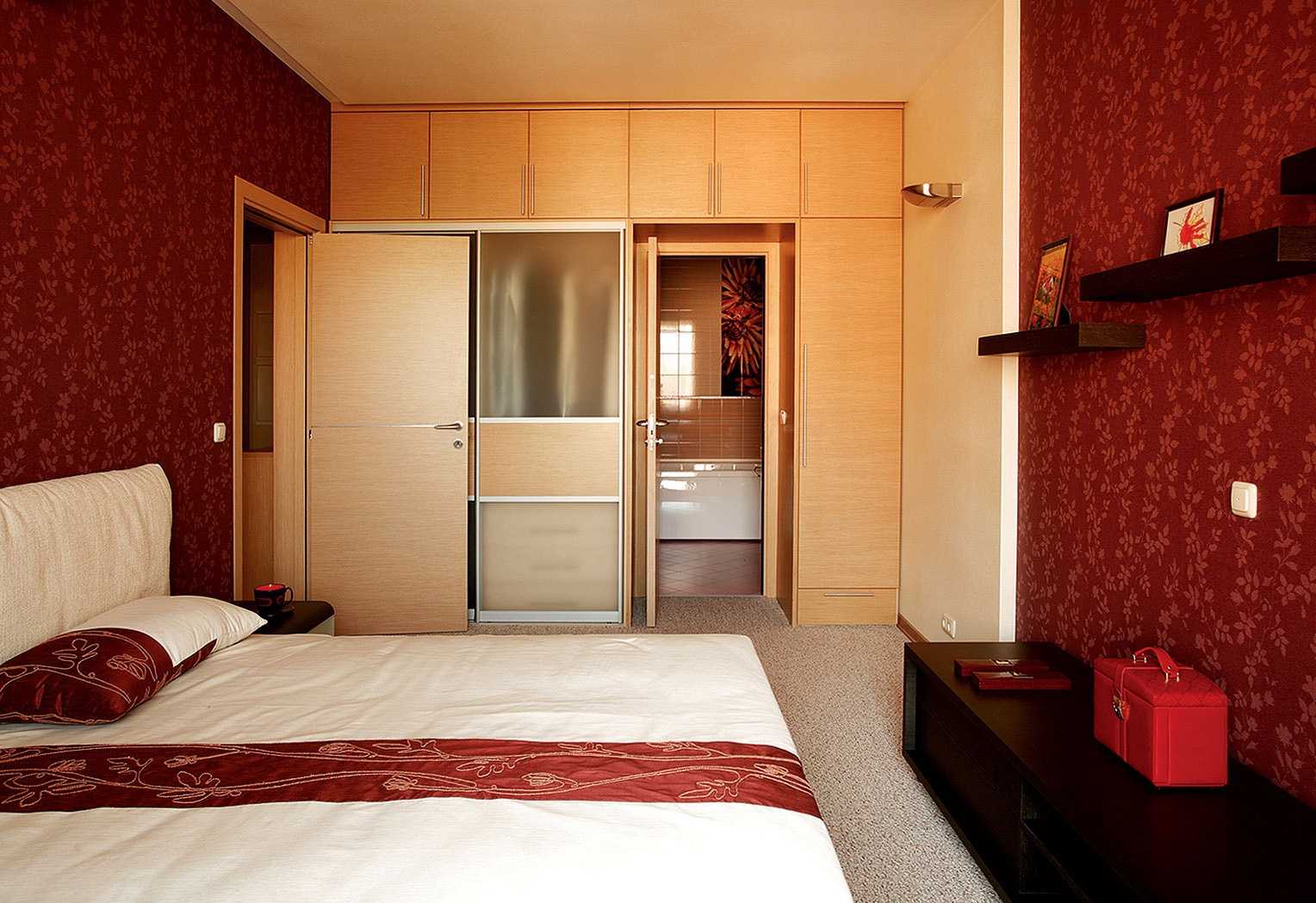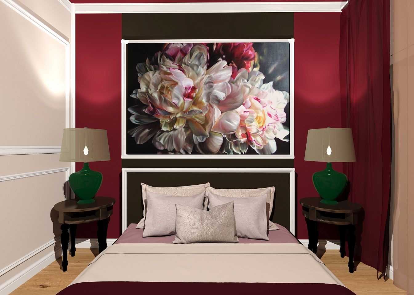 Intense burgundy color in the bedroom interior