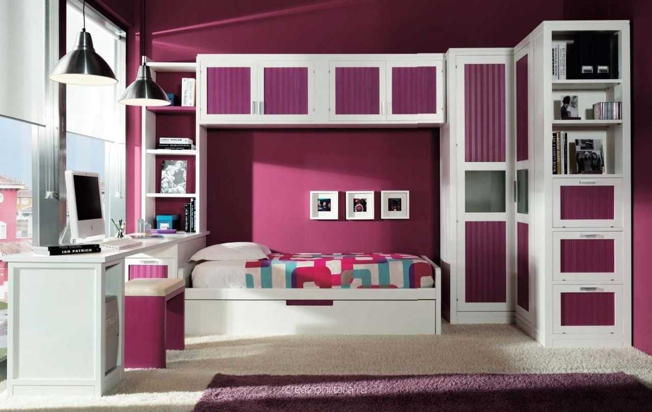 Bright room design with a burgundy tint