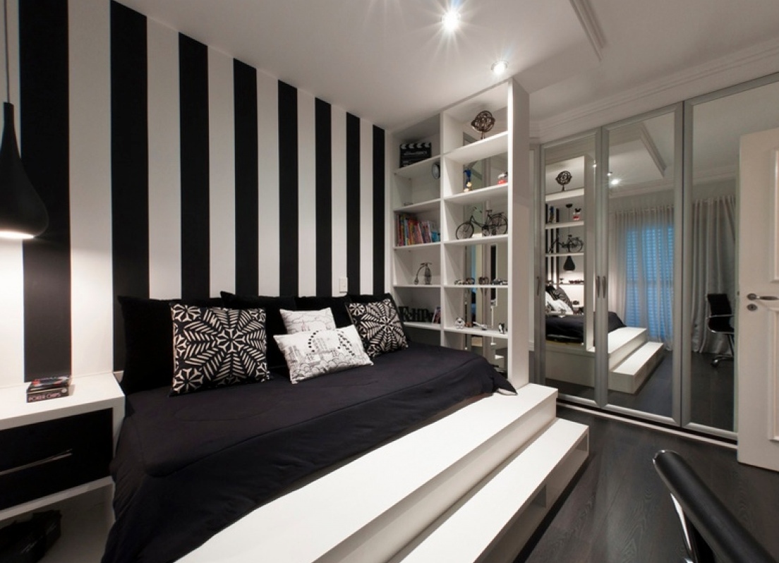 When creating a black and white room, it is important to consider that a dark finish visually reduces space, which means it is suitable only for spacious rooms. In a small apartment, such a coloring will be depressing.