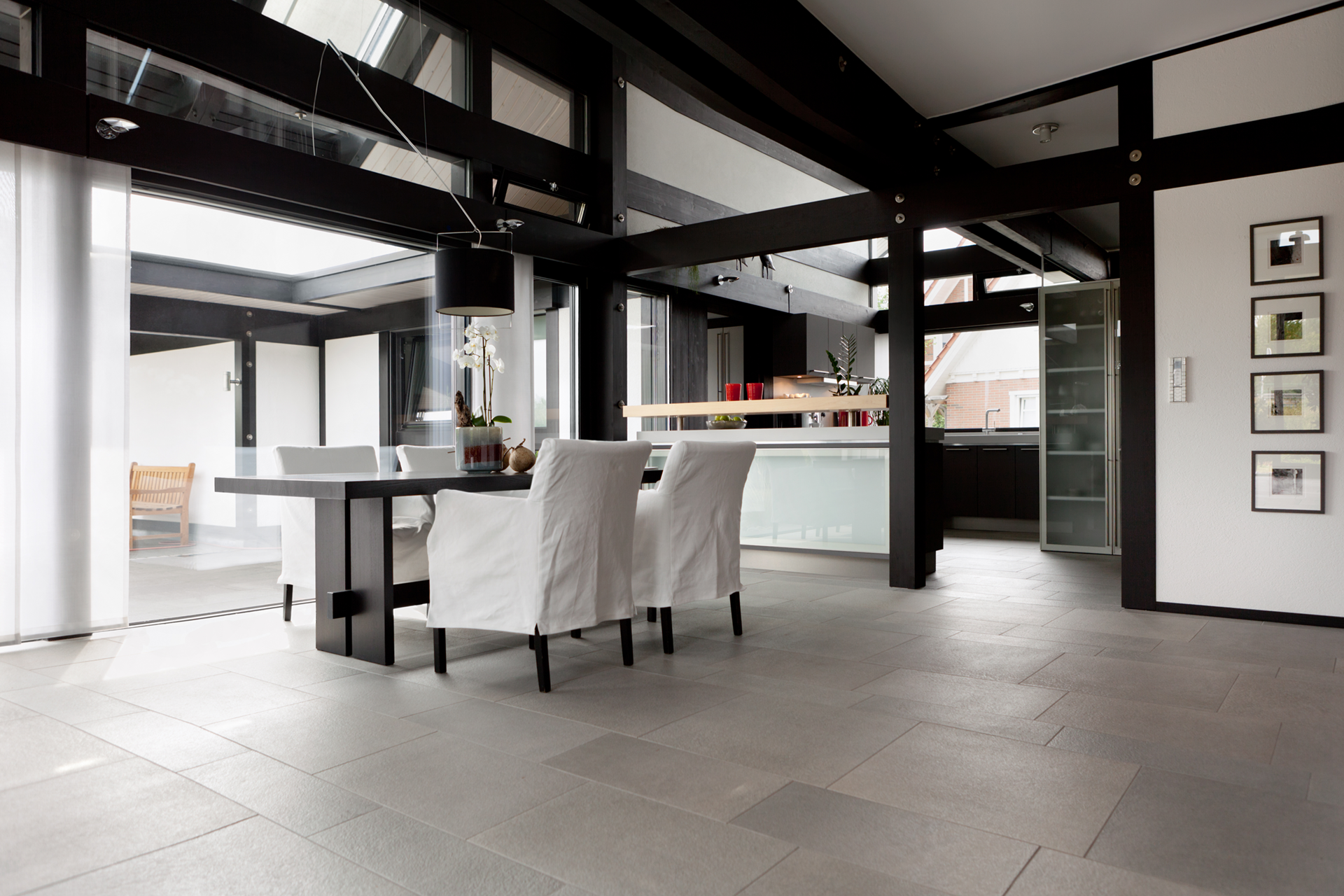 The black-and-white interior does not impose almost any restrictions on the decoration materials. It is important only to select them depending on the functional purpose of a room. In a kitchen or bathroom, it would be more logical to use ceramic tiles, both for walls and for floors. If the kitchen is made in the classical style, then the floor from materials imitating natural wood will quite fit in there.