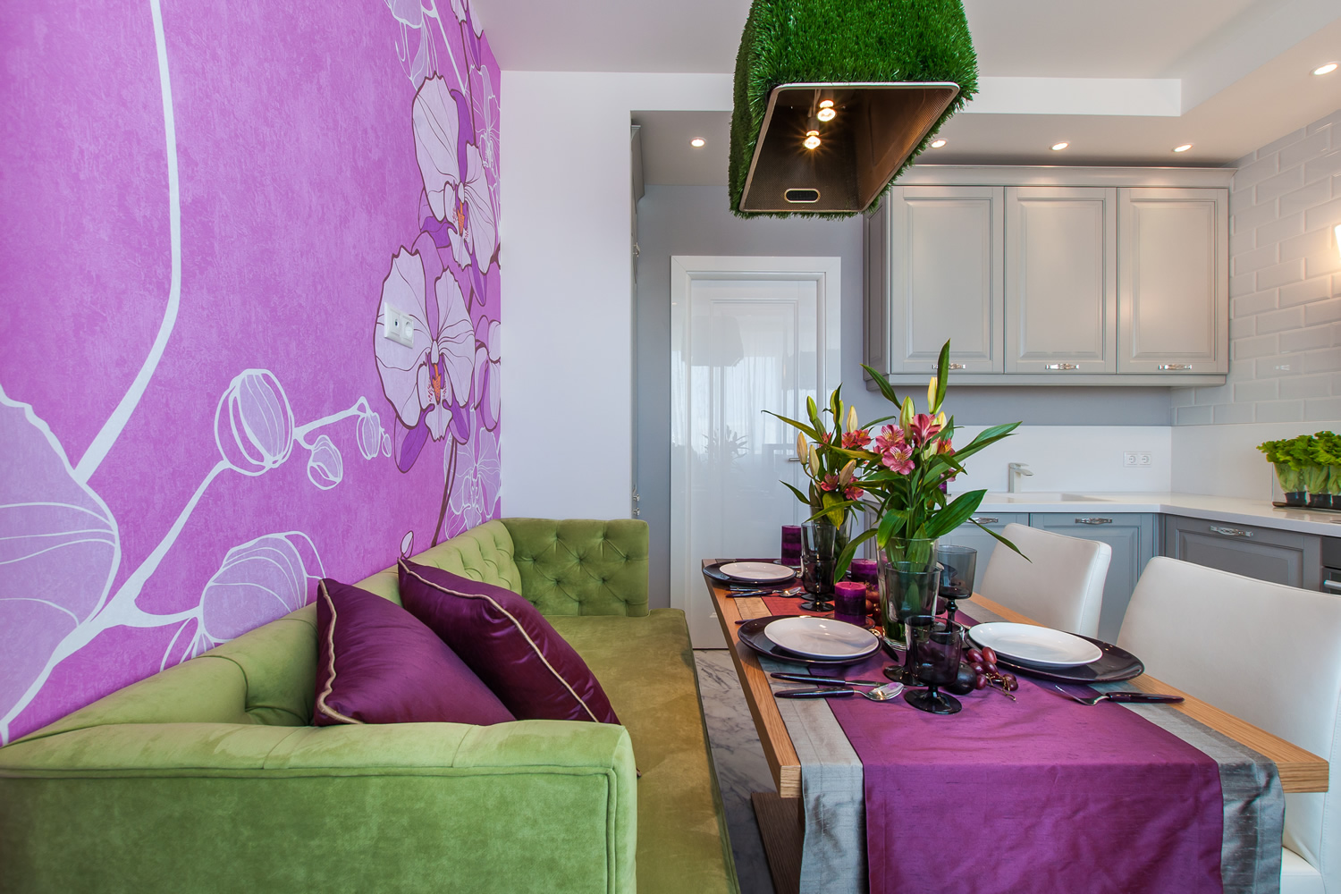 Fuchsia color in the interior of the kitchen