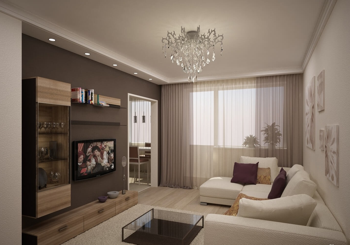 In the case of shades of brown do not have to "bother" with the purchase of accessories. You can put on sight souvenirs from the last trip, your favorite books, dishes. When you don’t want to fundamentally change the situation, it’s enough to put a new coffee table, decorate the room with vases or place a bright poster on the wall.