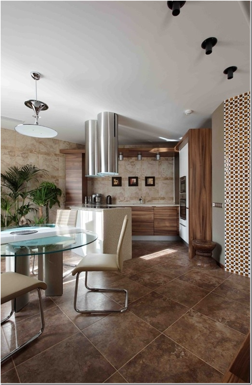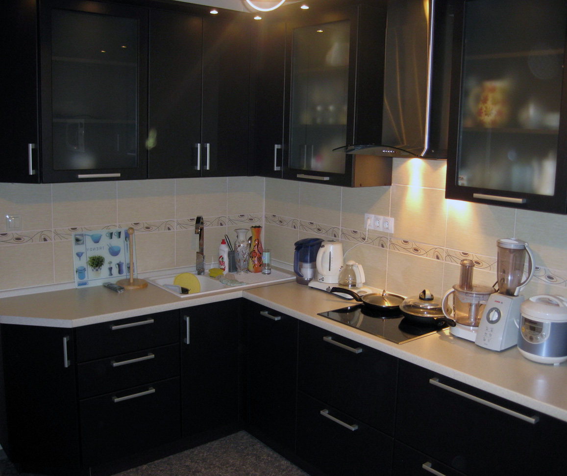 You can choose the color of coffee for the design of a glossy tile or corner sofa. But in this case, you need to add contrasting light shades. To the kitchen was without dark corners, you must use the backlight.