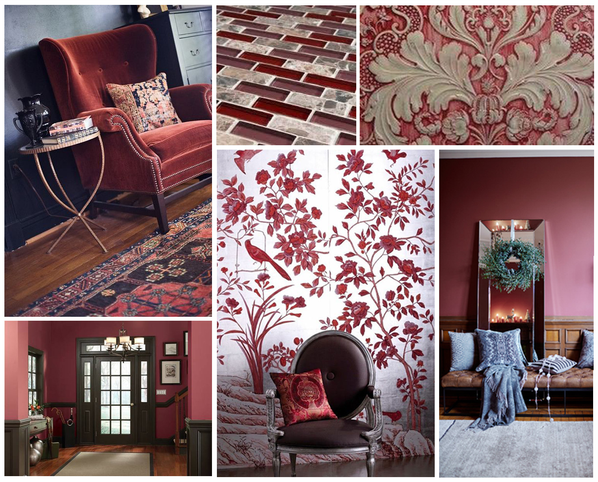 - Blueberry, red and wood tones are a great addition to the color of Marsala in the interior.