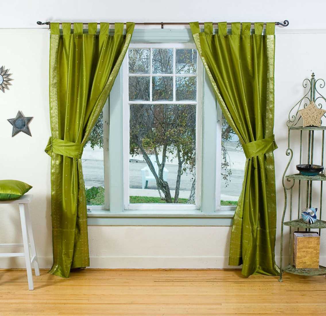 Green curtains in the room