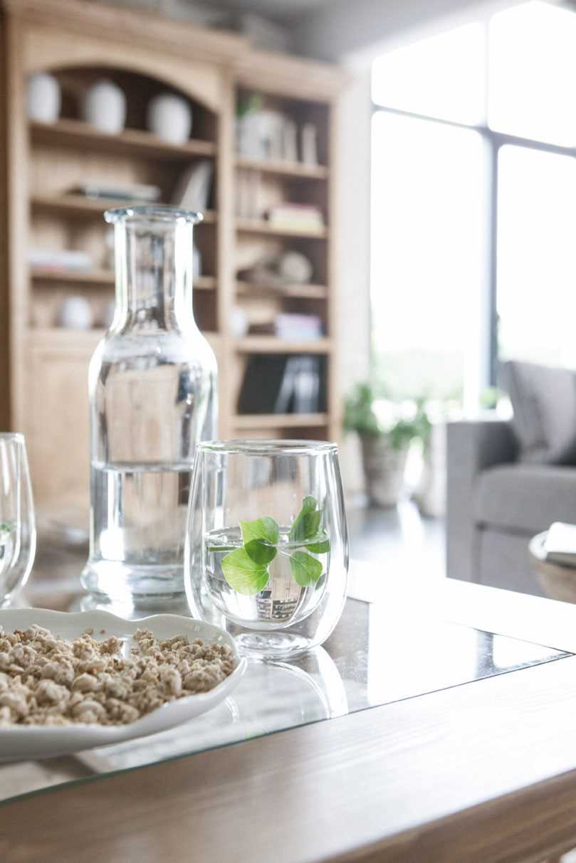 On the table in the living room you can put a vase with branches or flowers