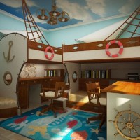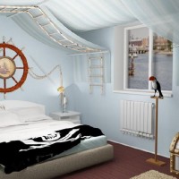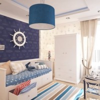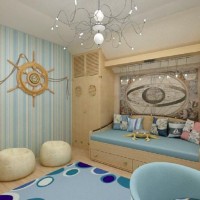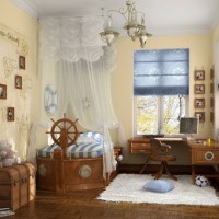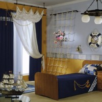 At registration the rooms marine style for boys other ship attributes may also be present - ropes, ship bargaining, round windows in the form of portholes, an anchor and a helm.