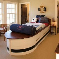 Today on sites and in furniture supermarkets there is an extensive selection of children's furniture on this subject. Folding sofas "Dream", "Wave", "Boat", "Boat", etc. Models of beds are not inferior, ranging from bunk, as in this cabin, ending with models in the form of a boat lost in the ocean.
