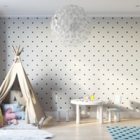 Designer's recommendation:Non-woven baby wallpaper, so popular in the World, originally from Sweden. They are issued for children. of all ages: girls, boys. Masters combine some colors and get interior spots: plain, neutral colors wallpaper diluted with bright pictures or geometric shapes.Chalky wallpapers that are only in fashion will allow you to show your to the child and to you art abilities. Material allows without damage to the interior, draw with chalk and then wash the boring old drawings.