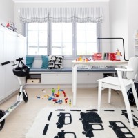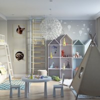 The room for the child, in the Scandinavian style, is practical and, due to minimalism, absolutely safe even for baby. It gives a flight of imagination and develops creative thinking.