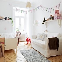 Perfectly colorful decorations will complete the composition - flags, pictures and posters, family photographs in special frames, decorative houses, deer heads and other animals. And do not be afraid, it is difficult to overdo it. it will be unusualfit into common Scandinavian style, little things that will please you and your his a child.