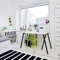 - The use of bright elements in the decor (books, drawings, posters);