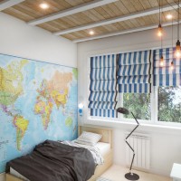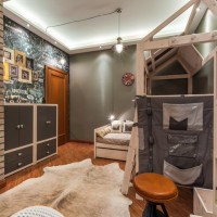 Those who are attracted by the opportunity to combine a creative workshop and a bedroom also choose the "attic style". Often, such apartments are worthless converted lofts, with characteristic pipes coming out of the wall, communications laid under the ceiling, and metal stairs. A dormer-window or stylish dormers on an inclined surface of a wall under a roof effectively complement the general surroundings of a functional room. Children’s loft style for a boy filled with suitable accessories, lighting and furniture.
