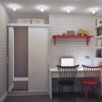 A lot of furniture in this style is not accepted, and the built-in closet will “absorb” all personal items and small items. Hinged shelves can complement a modest set of children's furniture. But they should be without doors or generally “invisible”, that is, made of glass on chrome-plated brackets. They put everything you need for study or a hobby. Chaos from scattered objects or the accumulation of small things is not welcome.
