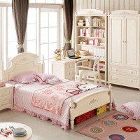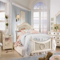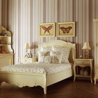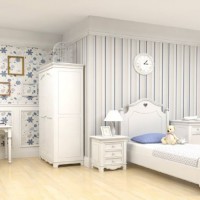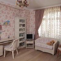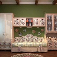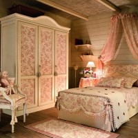 Facades of cabinet furniture characteristic of the style - with moldings and panels, painted and hand-carved, decorative inserts and bent legs. Furniture was previously made by hand, and all of these beds and cabinets, bedside tables and tables can be very simple or, on the contrary, show a special grace. The style is suitable for a spacious bedroom for 2-3 girls and for one child in a small room.