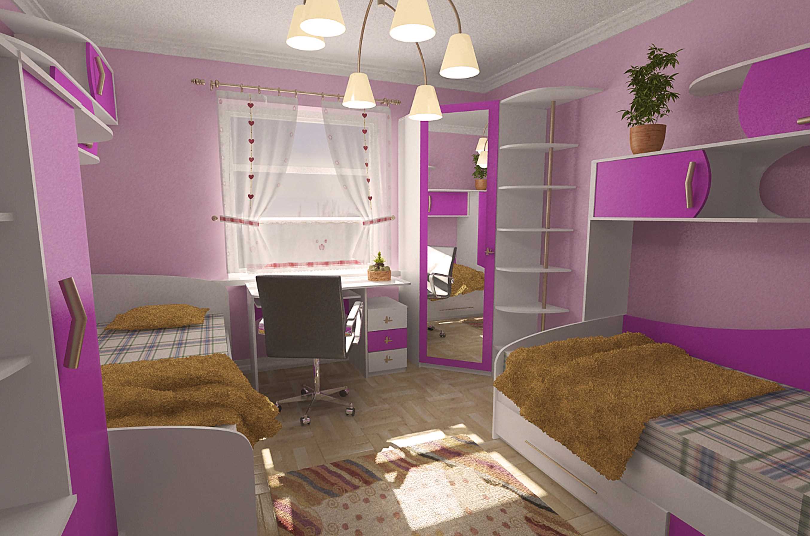 Attention! Some children care about their status among peers, and the design of a bedroom for two girls is important for them, where they can invite their classmates or girlfriends. In bad weather, they will be interested to play a computer game together in a well-equipped children's room, solve puzzles, demonstrate outfits or hand-made.