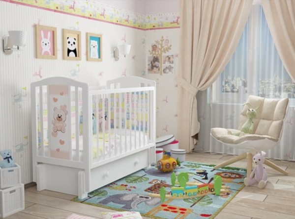 The most important rule when decorating a room for a newborn is the use of environmentally friendly materials. All surfaces and objects in the room must be harmless to the baby.