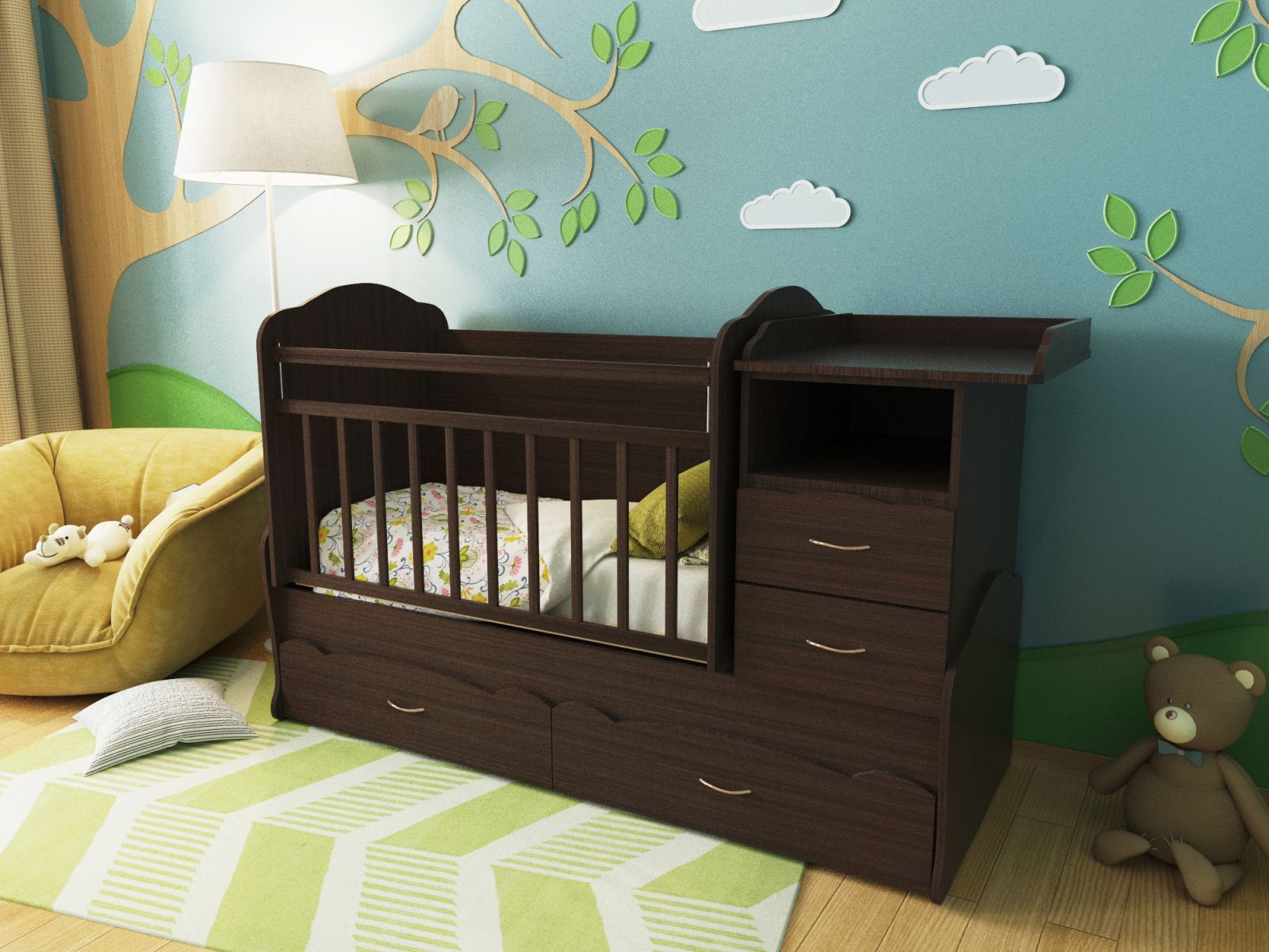 The child still does not care how his room is equipped and what color the wallpaper is in it, but for parents it is important that the daily chores with the baby take place in the most comfortable conditions. Then infancy will fly by and be remembered as one of the most joyful times.