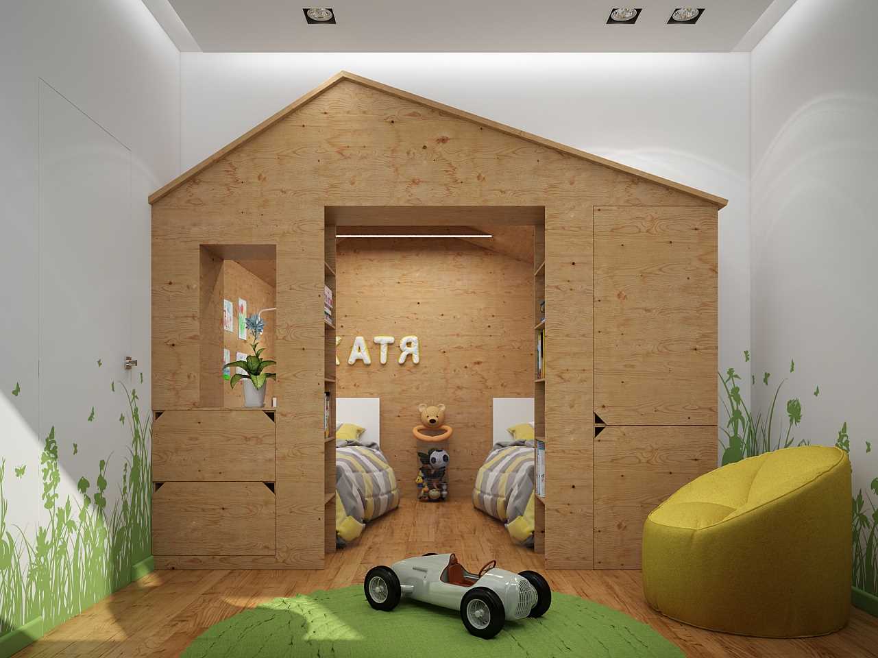 5. Diverse children also have to settle in the same room, but when they grow up, they will have to differentiate between places for sleeping. But until 10-11 this will be a common room, then the boy will be relocated to another room, but the general training zone remains.The interior for the boy and girl should reflect their diverse interests, the background is neutral.