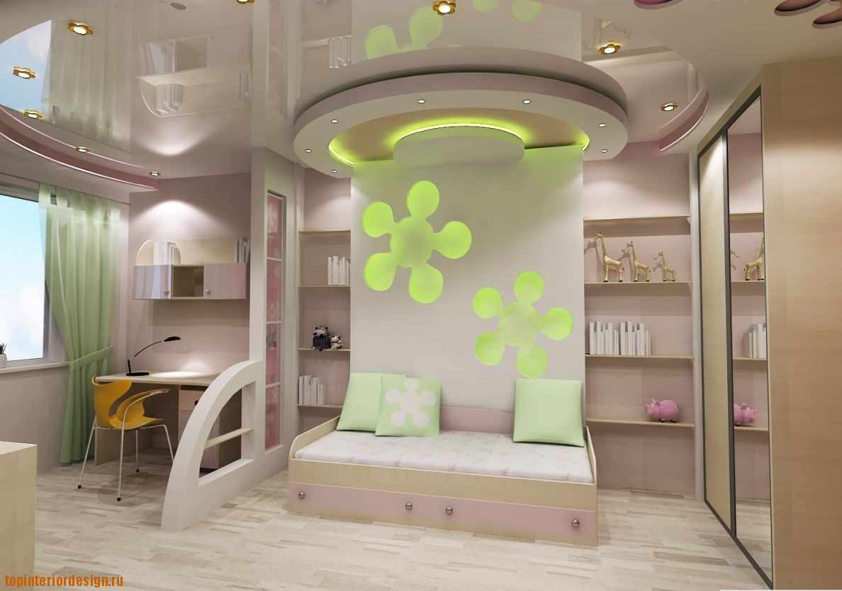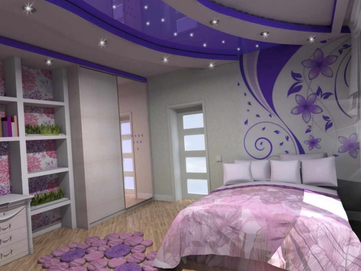 In the bedroom for the girl, it is better to pick up bright and colorful tones