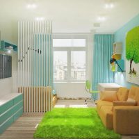 You can install moving partitions in the style of Japanese traditions in the children's room. Visual division involves, for example, painting the walls in various colors. The wall by the bed can have a calm mint color. Near the desktop and bookcase with books it is better to stick bright wallpapers with a dynamic plot.