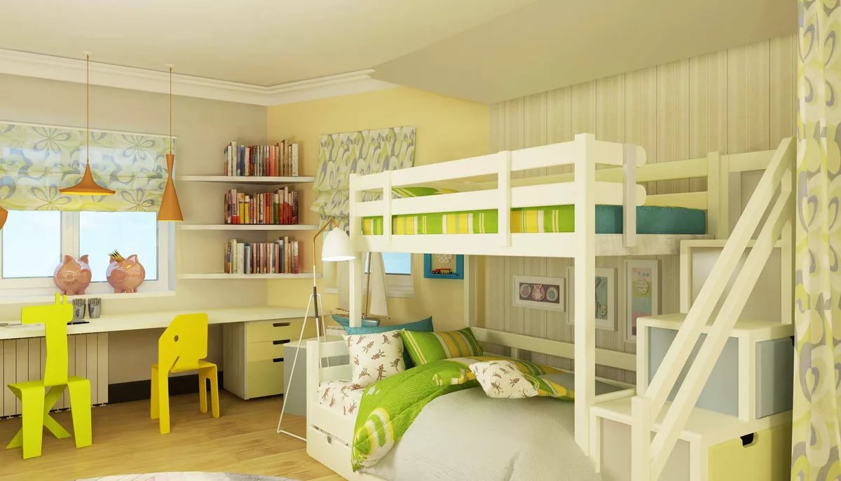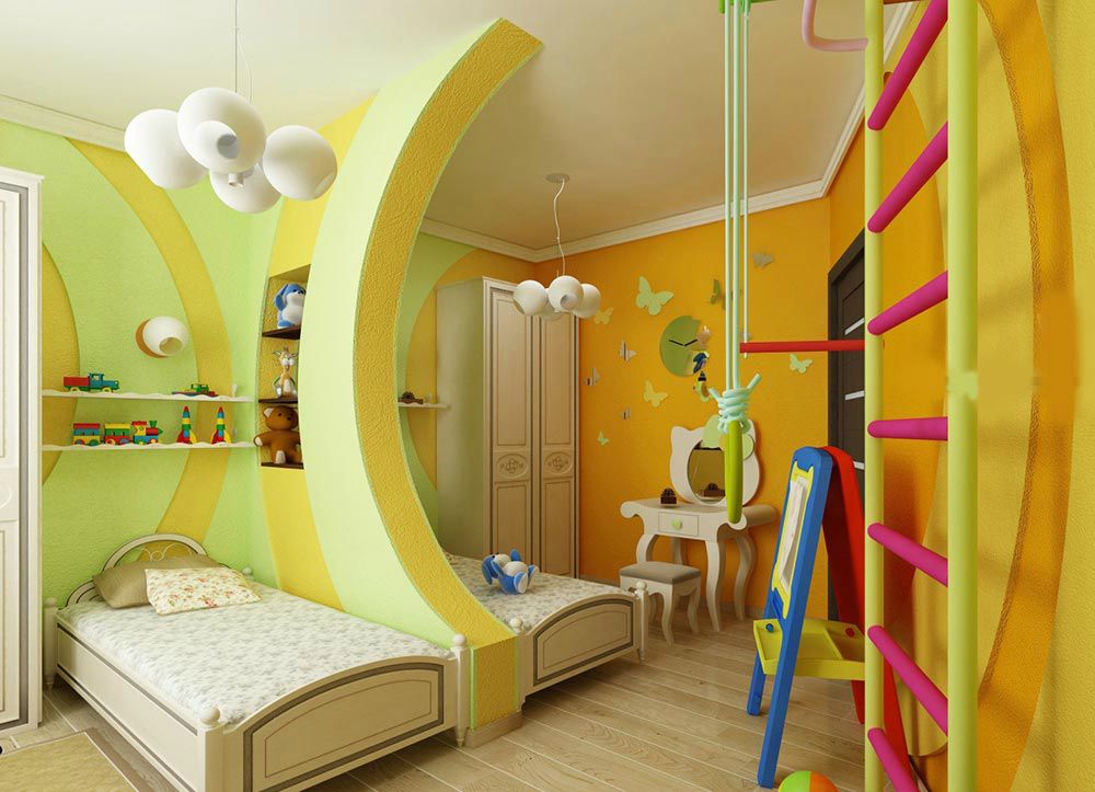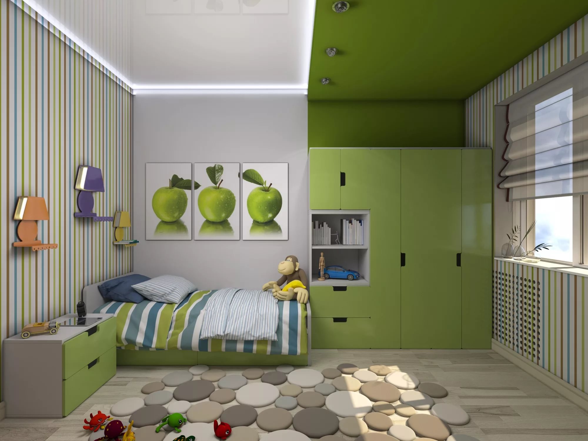 The lighter the walls, the greater the savings on fixtures. After all, it is known that white color reflects all the rays of the spectrum. White walls and a ceiling for vision are the most useful. Accessories of any color will be combined with light walls, for example, a pink bed, a grass-green rug, a yellow lamp in the shape of a month. Another good idea is to design everything in natural colors. It is milky, creamy, the color of unpainted linen, dark green. They will create a calm atmosphere, they will not be annoying.