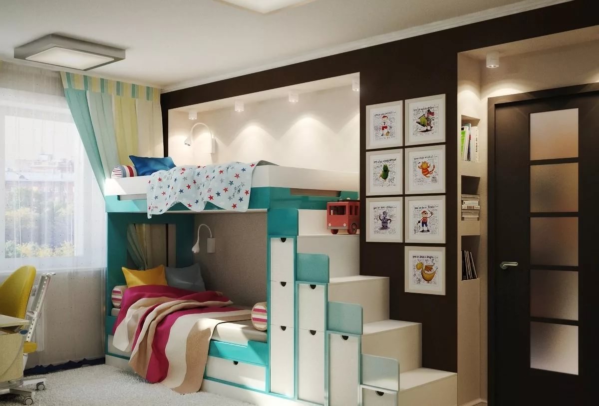 One room may involve different types of activities - chatting with friends, studying, playing and relaxing. Not every parent has the opportunity to make their child a separate playroom, bedroom, living room, gym. Therefore, within the framework of one children's room, they try to make several zones.