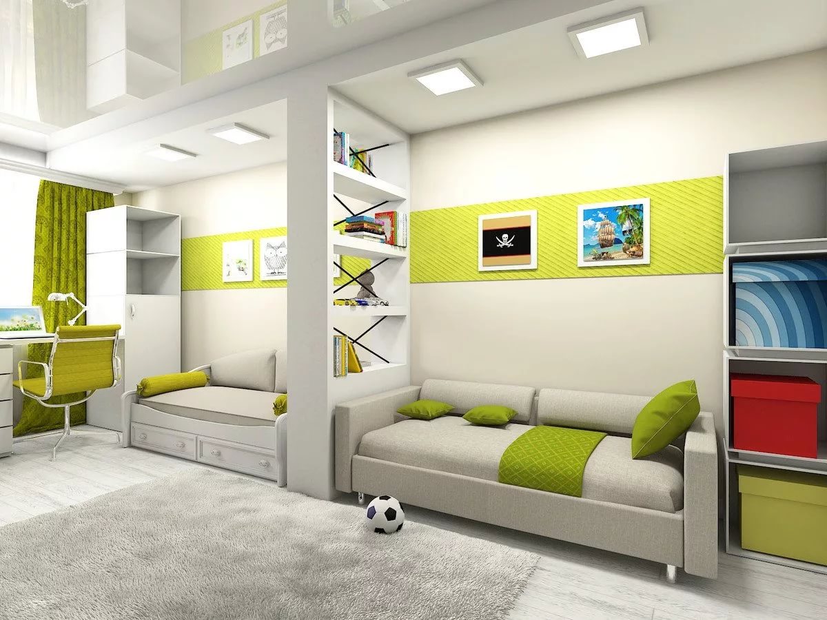 To ensure maximum comfort during games, recreation, intellectual activity, the room is divided into parts.