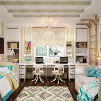 Children grow, develop, they need to absorb huge amounts of information in order to learn. Having come to his room, the child does his homework, and after that he needs to calm down and fall asleep. The way of life of a teenager corresponds to his personal space, the interior of 2019 should be pleasing to the eye, be environmentally friendly and safe.