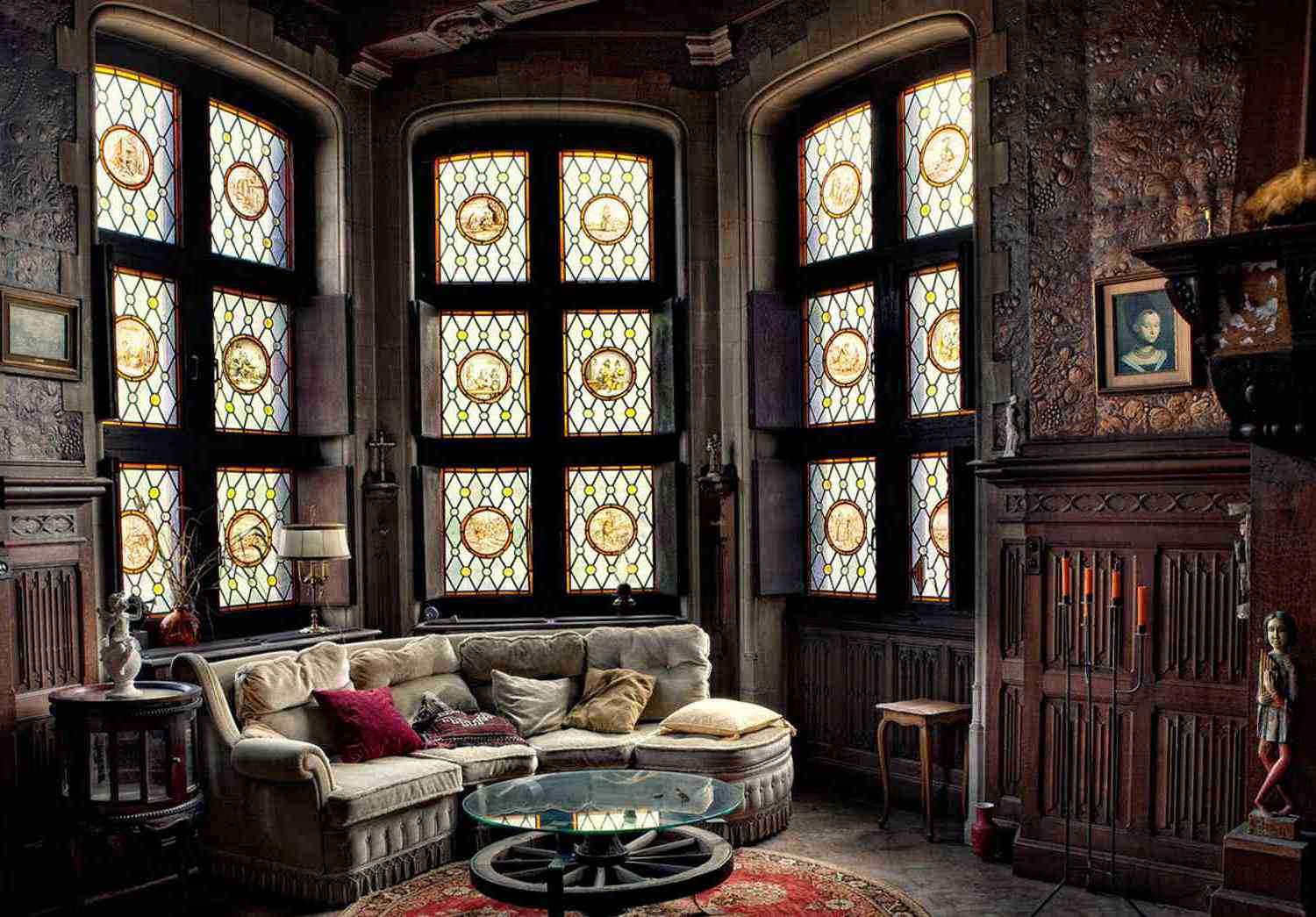 In a modern design, such a window can become a decoration of the facade of a country cottage. But most often they are limited to large windows around the perimeter, decorated with stained-glass windows. They will give the facade an unusual look, and decorate the interior. In the historical understanding of the interior of the Gothic style, they should go around the perimeter of the house, letting in a lot of light into the room, creating an unusual effect.