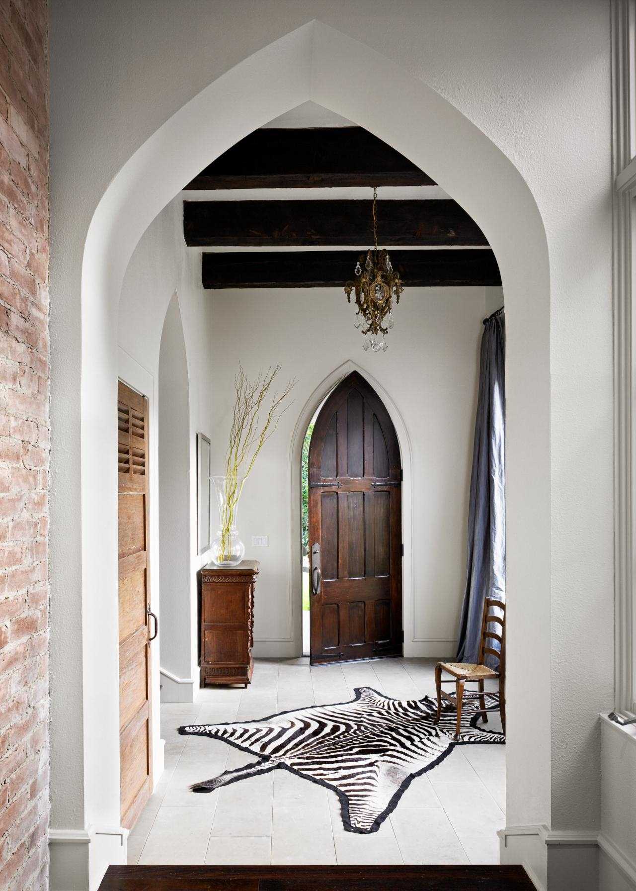 This is in case if it is not planned to make stained glass windows, there is no possibility of creating arches, niches, otherwise it will clutter up the space, and the main requirement of the style - air, space, will not be met. After all, the vertical features characterizing the Gothic style did not appear by chance - it is a desire to go up into the expanse of heaven.