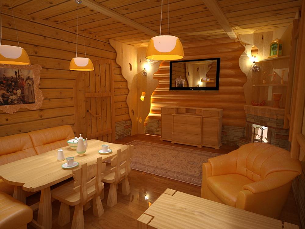 The conditional division of the recreation room into functional zones allows you to maximize the use of usable space, while not cluttering it up. Preferably, the interior of the relaxation room in the bathhouse should be performed in a single style, everything should be combined. Mandatory interior items are a large table, comfortable sofas or benches, cabinets for storing trifles (healing herbs, tea, jars of oils, creams), hangers.