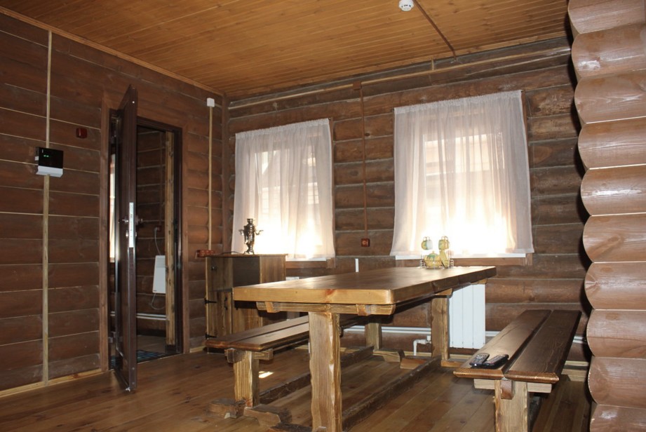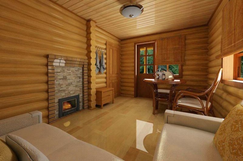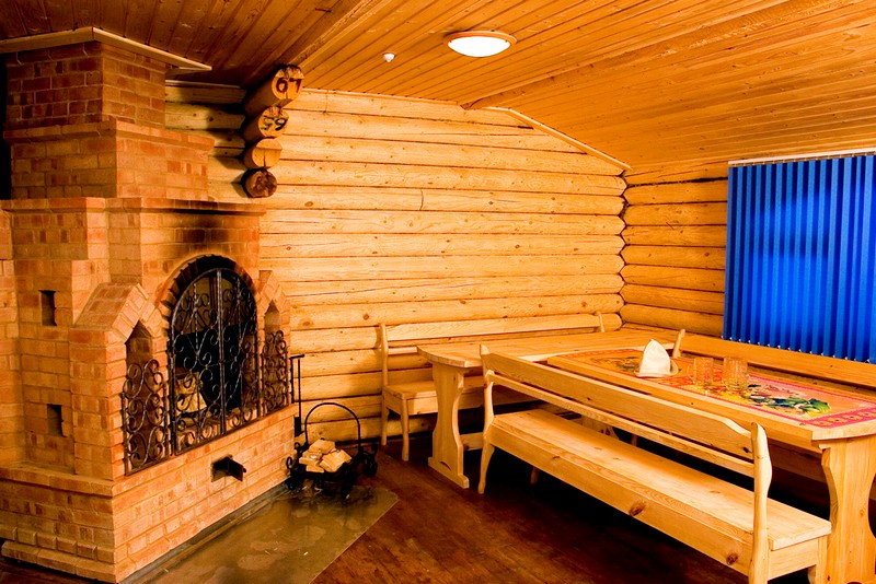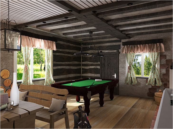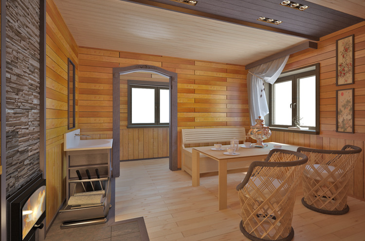 Very often, the bathhouse is a gathering place for relatives, friends and acquaintances. Be sure to put a large table with a samovar, where everyone can gather after the steam room for tea drinking and a pleasant conversation. Installing a pool table will unite you for an exciting game. And comfortable sofas contribute to relaxation.