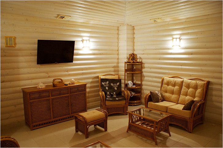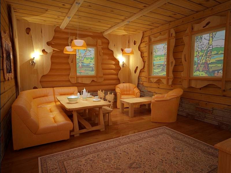 The relaxation room should be decorated in the same style as the whole bathhouse