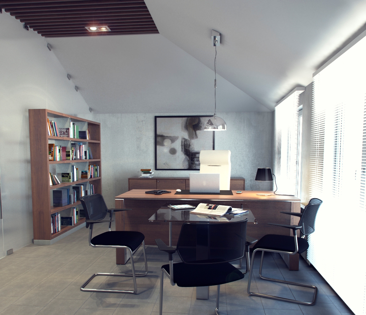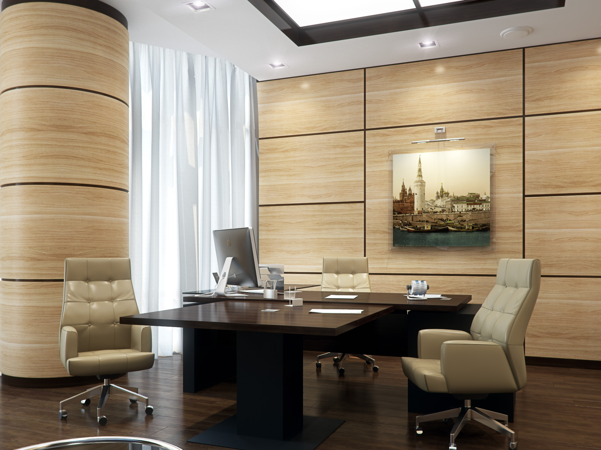 Such shades make the modern director’s office not only stylish, but also set up those present to work.