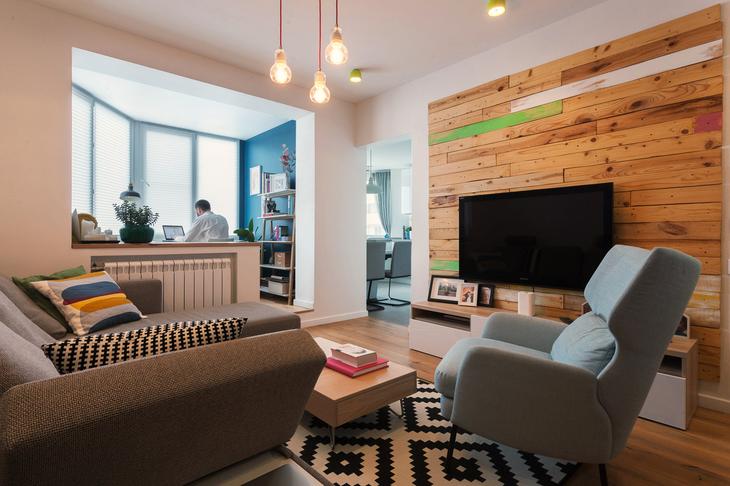The redevelopment was minimal - one loggia was attached to the living room and organized a study in it
