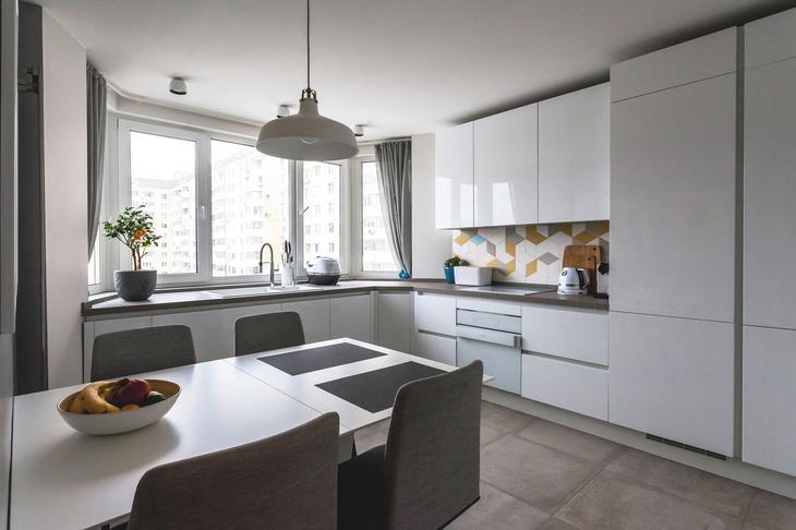 The bay window is a good place to experiment in interior design of the P 44 apartment, where there is a lot of natural light. There may be a desk where students will learn lessons, or a comfortable sofa for reading or working on a laptop.