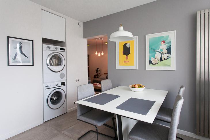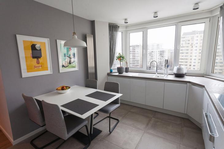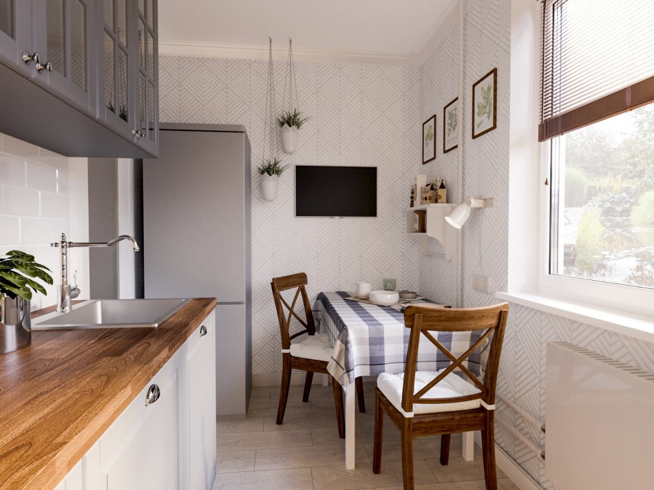 | 2. | Add kitchen area to the loggia | Remove the door and window, make full insulation and take out the dining table (chairs with a cupboard) |