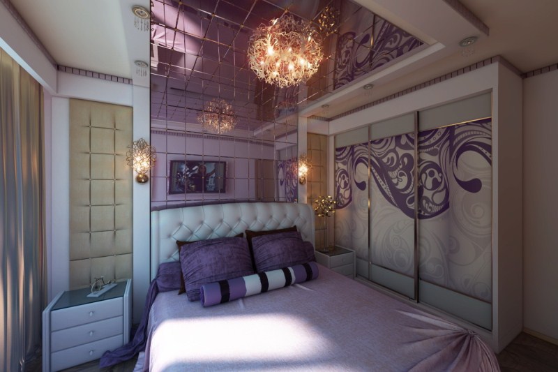 Cabinets with mirrored doors visually expand the space of a small bedroom