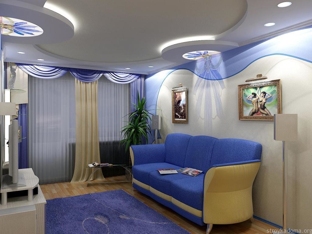 The next principle is design should increase space. And in no case not vice versa. Take this into account when choosing every part. of interior. For example, it’s better to pick up light tones, dark ones will do premise gloomy, and visually diminished space. Layered Plasterboard the ceilings also worth putting aside for tall and large rooms. Here, tensioners are best suited. the ceilingspainted or simply pasted over with wallpaper.