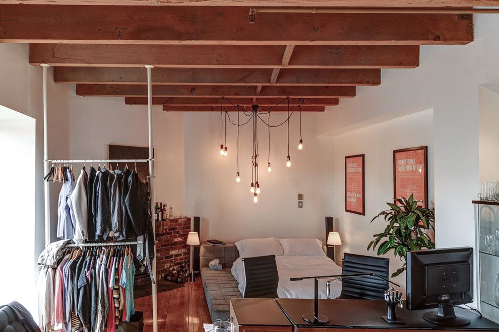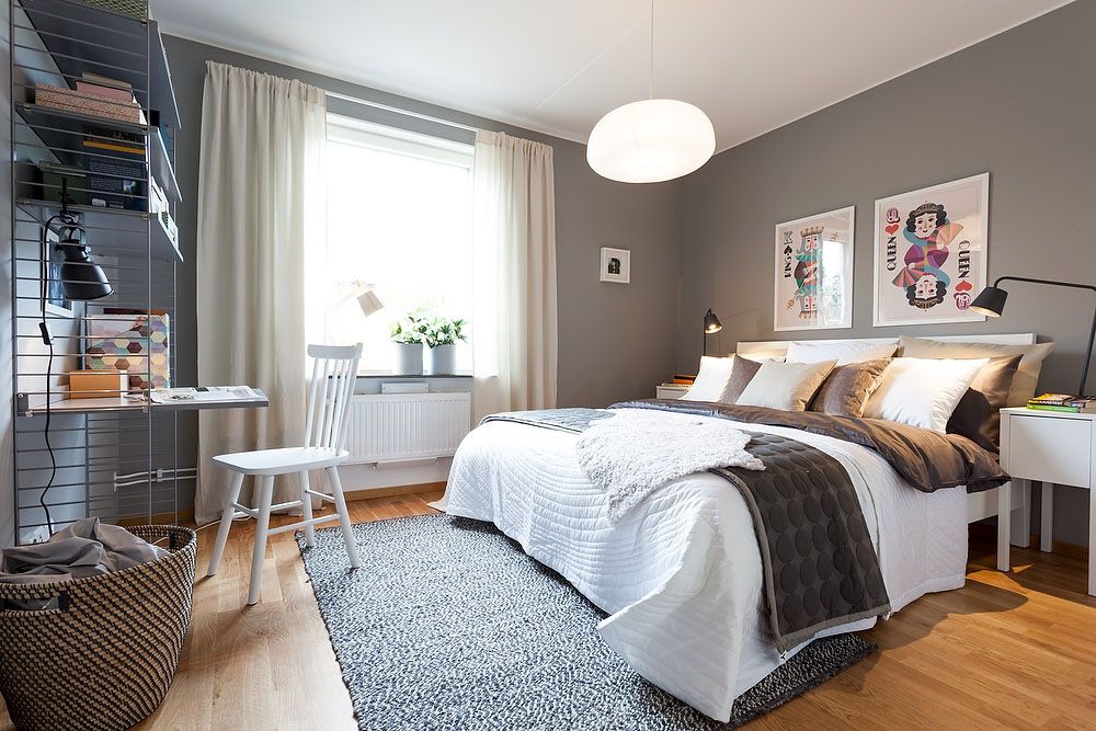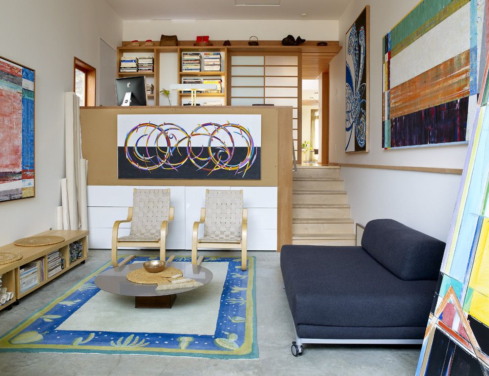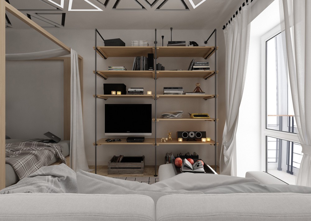 Sleeping zone it is desirable to separate (at least symbolically) from the rest of space. You can do this with a curtain, partition or cabinet. Agree, the bed in the middle the rooms It will look uncomfortable for both guests and the owner. So, be sure to allocate a separate place for the bed, which will be separated from the rest of space.
