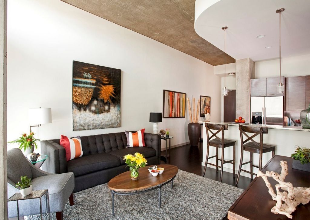 Creating the design of a small one-room apartment, experts pay close attention to two zones that adjoin one another - a living room and a kitchen.