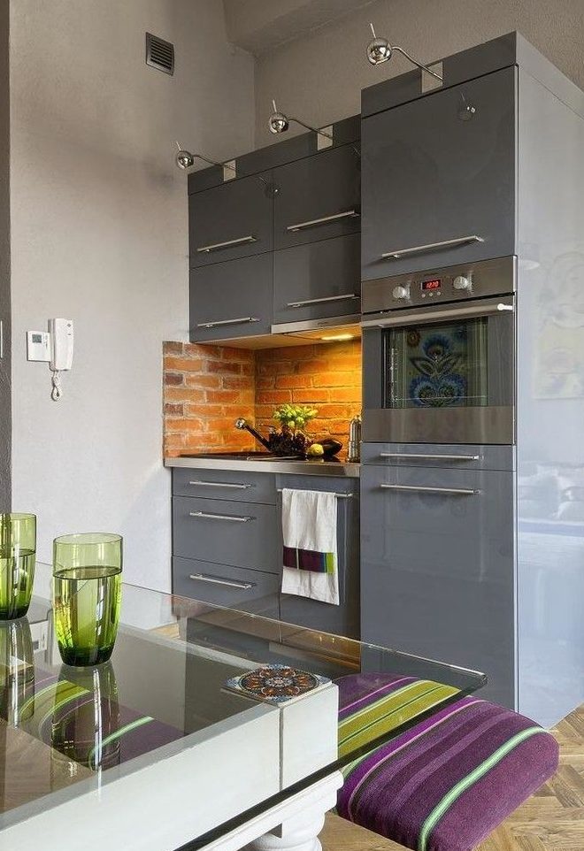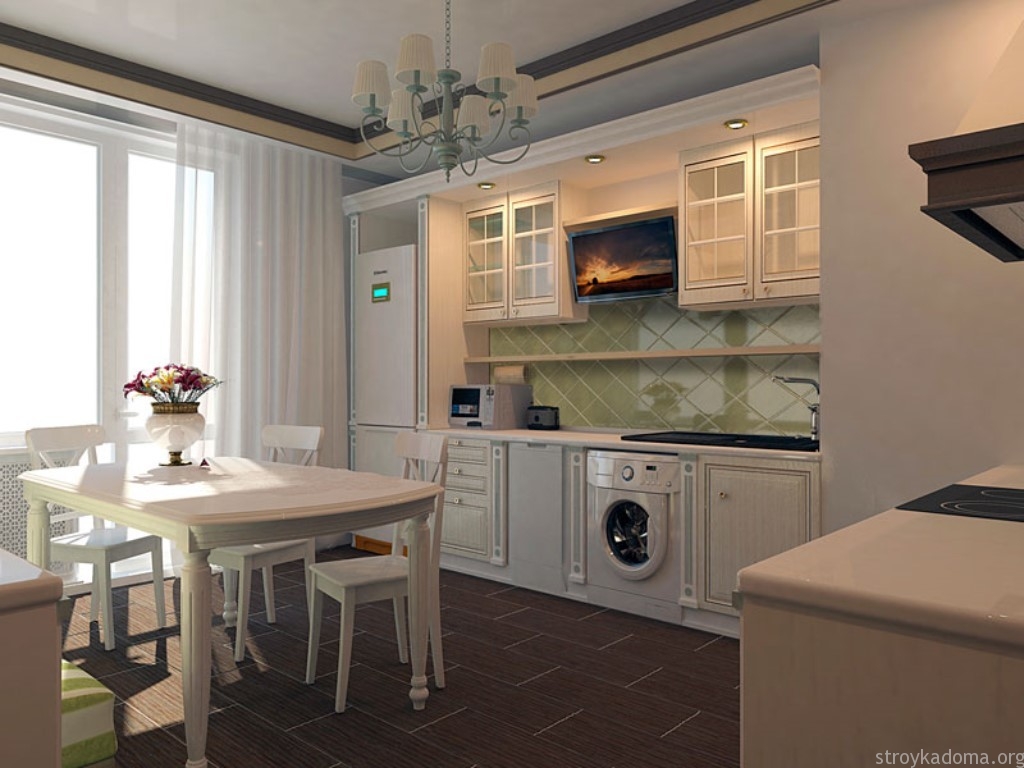You should also arrange a dining room. zone. If there is a balcony, you can combine it with the kitchen, and arrange under the dining room. But in this case, it is necessary to legalize the redevelopment. Another option is the bar counter. It suits best, as it simultaneously performs two functions: a kitchen unit zones and replacing the dining room.