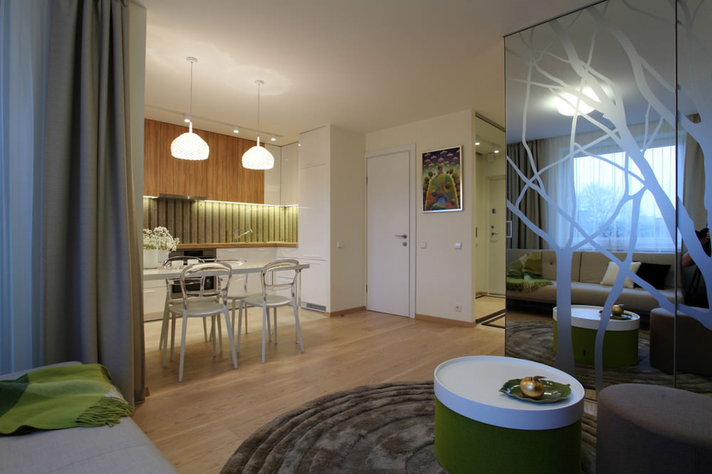 It’s necessary not only to divide premise on zonesbut keep free as much as possible space. This will allow you to get comfortable living conditions, functional interior.