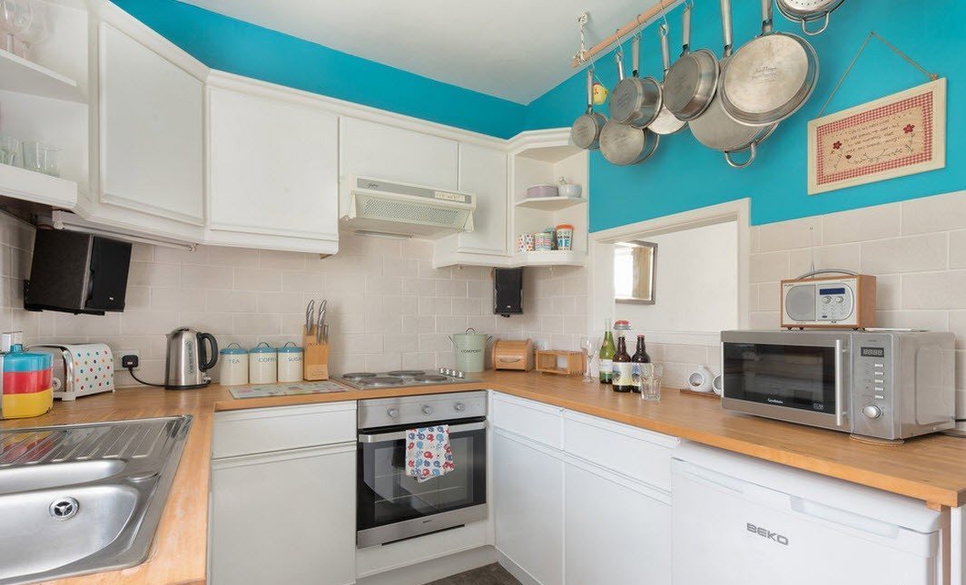 The Khrushchevs are “famous” for their small rooms. To make them larger will allow overstatement of the ceiling. It is desirable that the ceiling and walls are decorated in bright colors. This will visually expand the space. They can be plain or in vertical stripes.