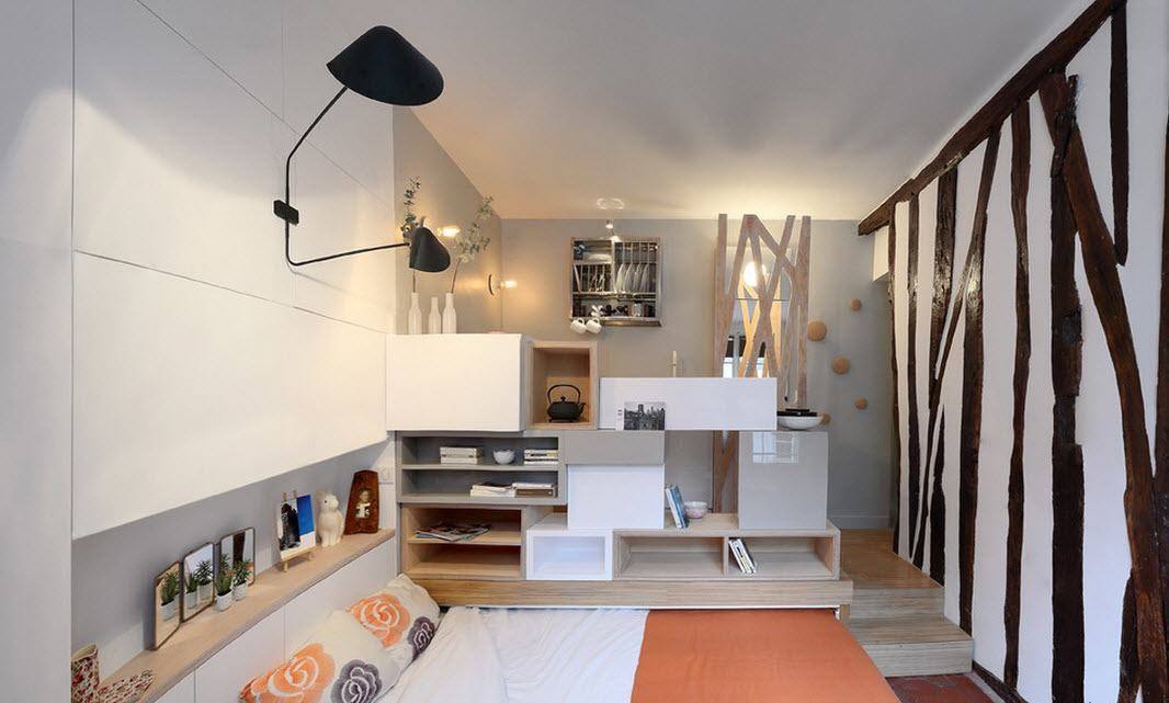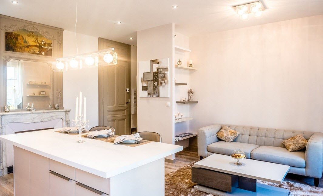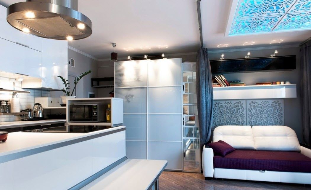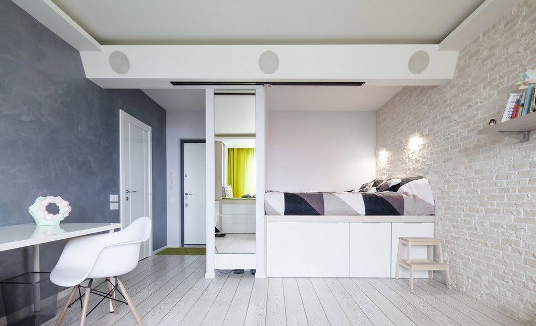The first thing you must do is remove all possible walls and partitions. Studio apartment is an ideal option. Here you need to correctly make zoning, divide space.